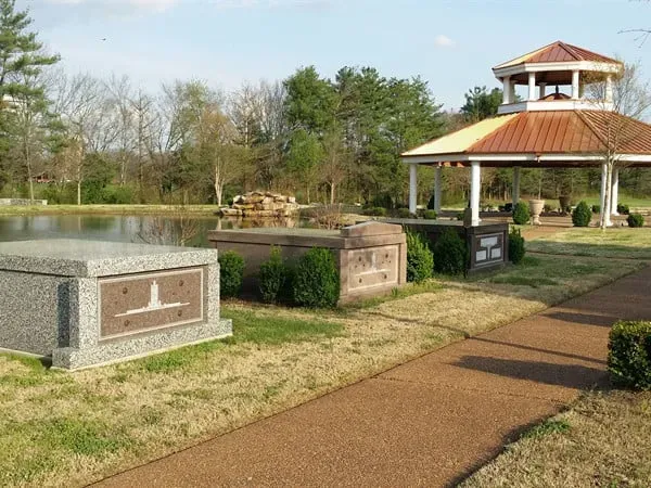 The Arbors is Polk Memorial's estate and upright monument section. It is also the home of multiple lakes where our swans Hope and Faith reside. Beside the lake, water features, and swans, the arbors is home to a beautiful pavilion. It is the fifth-largest pavilion in the state of Tennessee at the time of its construction. Families gather in the arbors pavilion through the iron gates on numerous occasions.